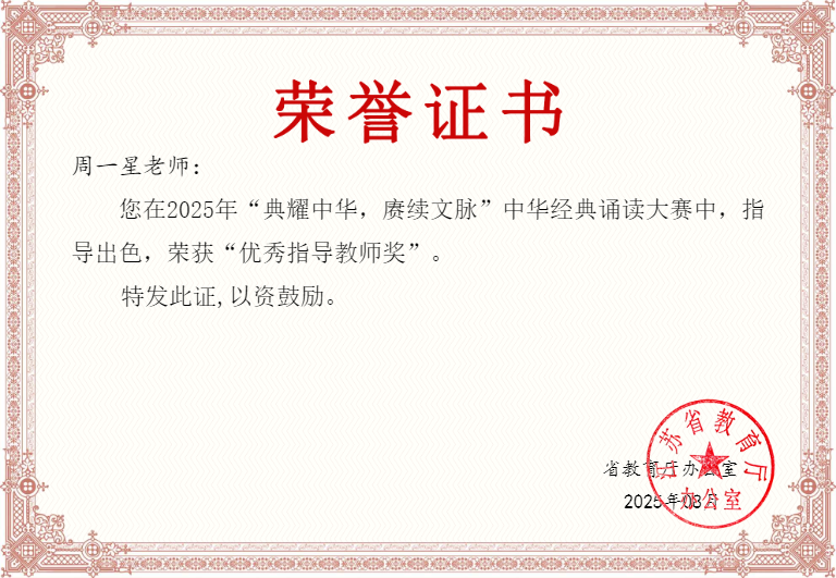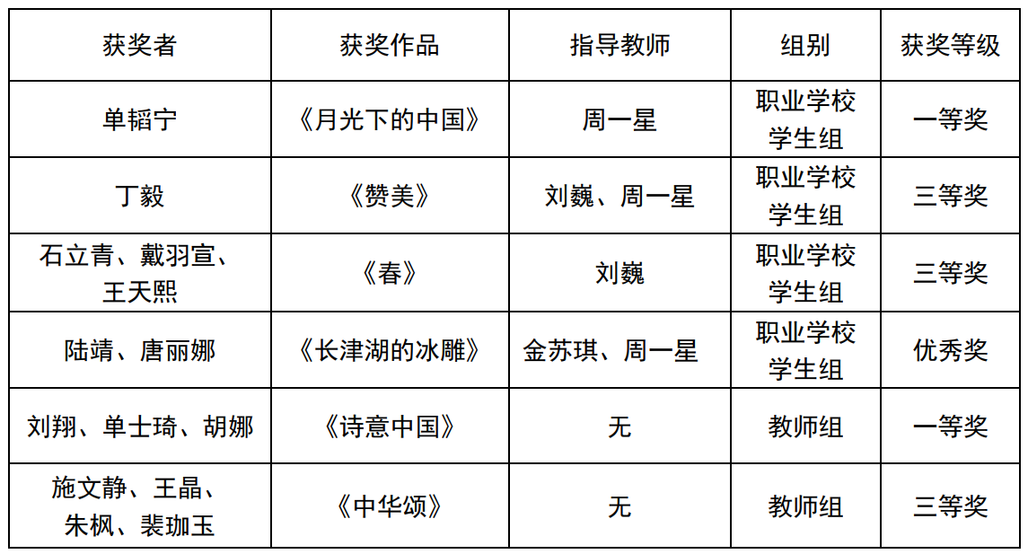 近日,2025年“典耀中华 赓续文脉”中华经典诵读大赛获奖结果公布。色情视频 报送作品获职业院校学生组一等奖1项、三等奖2项、优秀奖1项,教师组一等奖1项、三等奖1项,其中两项一等奖作品入围国赛,周一星老师荣获优秀指导教师奖,所获成绩取得新突破。