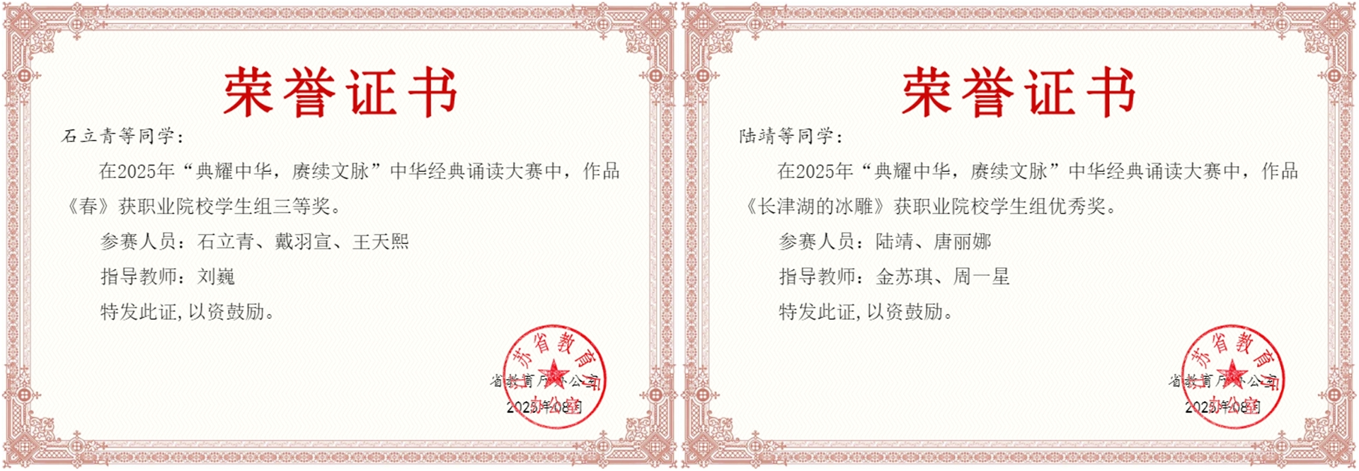 根据《教育部办公厅关于举办第七届中华经典诵写讲大赛的通知》部署,本次大赛系由江苏省教育厅组织开展的2025年度中华经典诵写讲系列活动的重要组成部分。学院对该项赛事高度重视,今年3月,院语委办、公共教学部联合举办了第八届中华经典诗文朗诵比赛暨省赛校内选拔赛,最终遴选出10名学生代表学院参加省级竞赛,并在备赛师资、场地保障及资金投入等方面提供了有力支持。