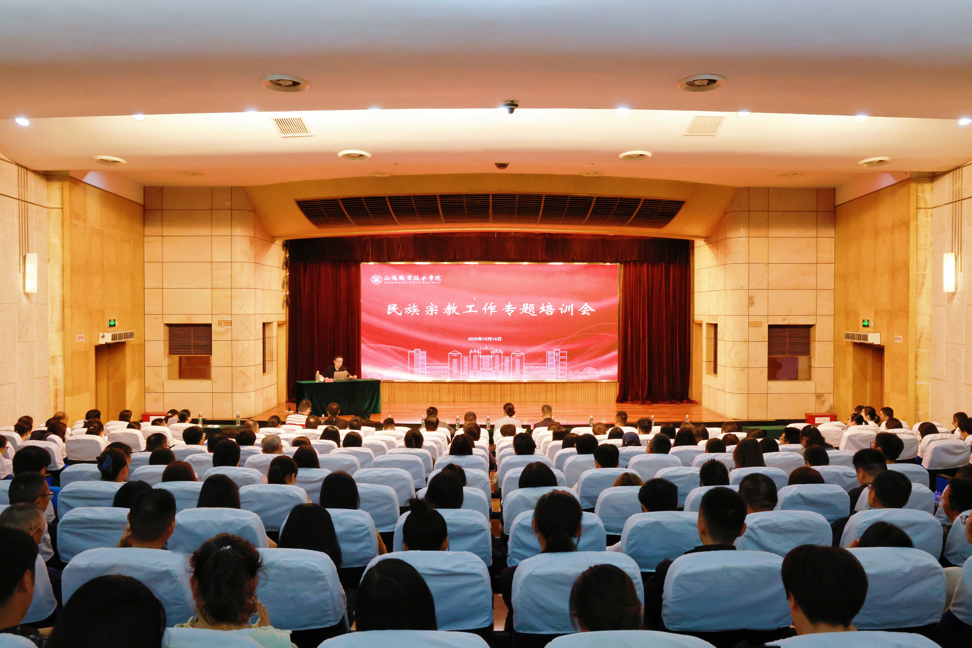 张云舒作了题为“学习贯彻宗教政策法规 立足实际提升高校宗教工作水平”的专题辅导报告,从宗教基础知识、政策法规解读、高校工作实务等方面作了系统讲解,内容详实、案例鲜活,既有理论高度又有实践深度对学院进一步做好民族宗教工作具有重要指导意义。