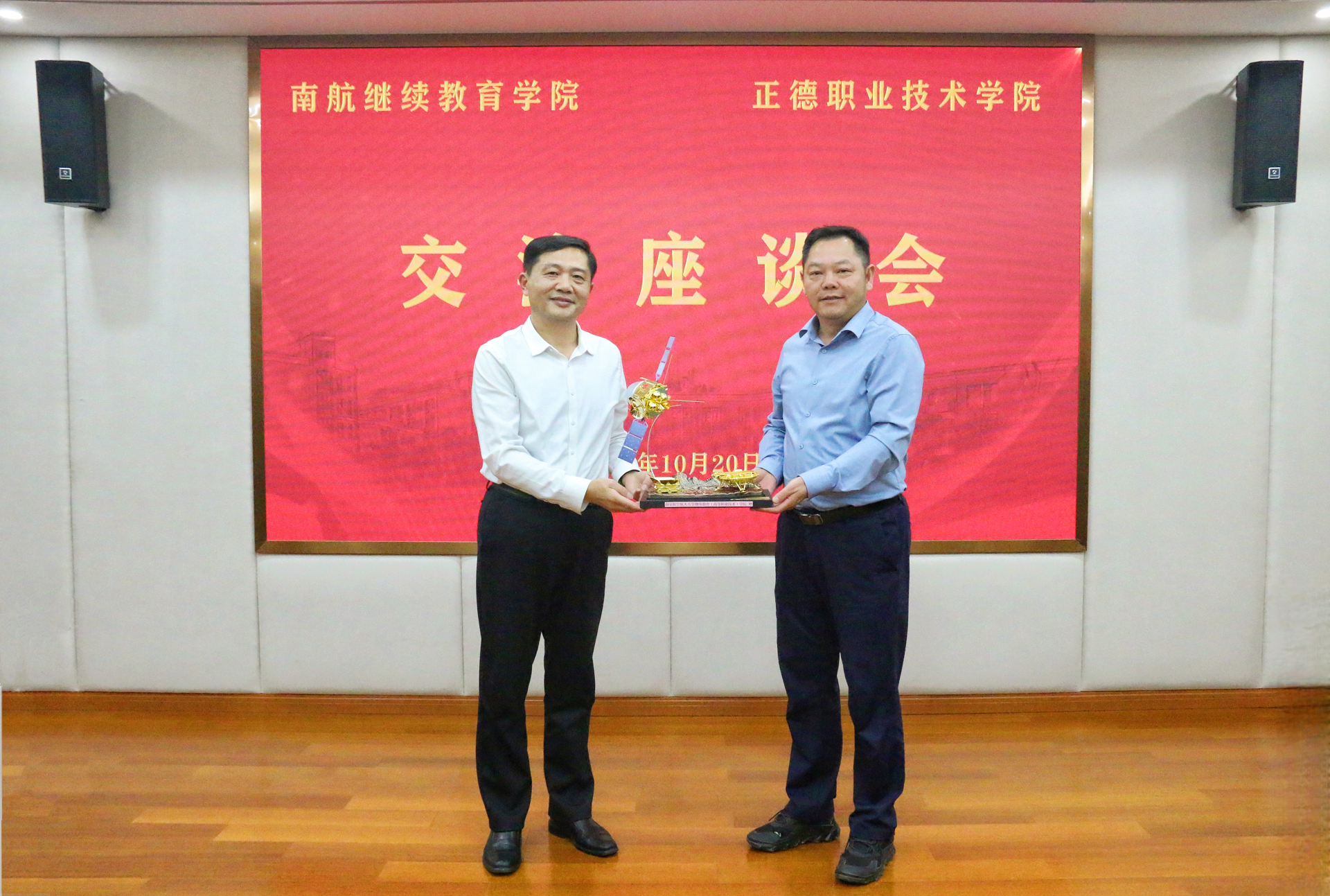 刘建成向正德学院的热情接待表示感谢,对正德学院近年来取得的办学成绩予以肯定。他指出,多年来双方在自考助学等领域联合培养,为正德学子搭起学历提升桥梁,彰显了两单位间深厚情谊。他强调,未来双方在专业建设、师资队伍建设、实验基地共建等方面具有巨大的合作潜力,期待进一步深化合作。