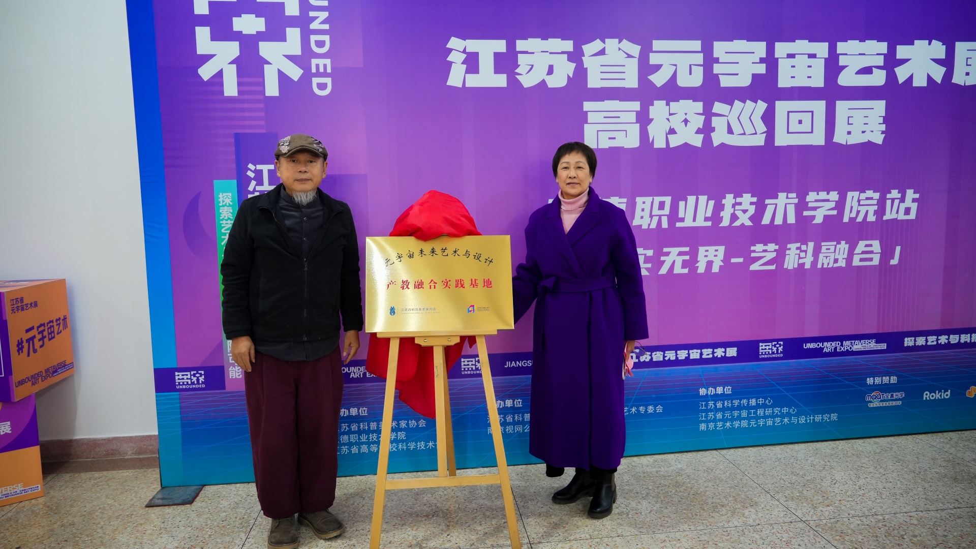 活动现场,赵宇副院长与盛瑨教授共同为“元宇宙未来艺术与设计产教融合实践基地”揭牌,标志着学院在引入产业前沿实践、深化校企协同育人方面迈出重要一步。