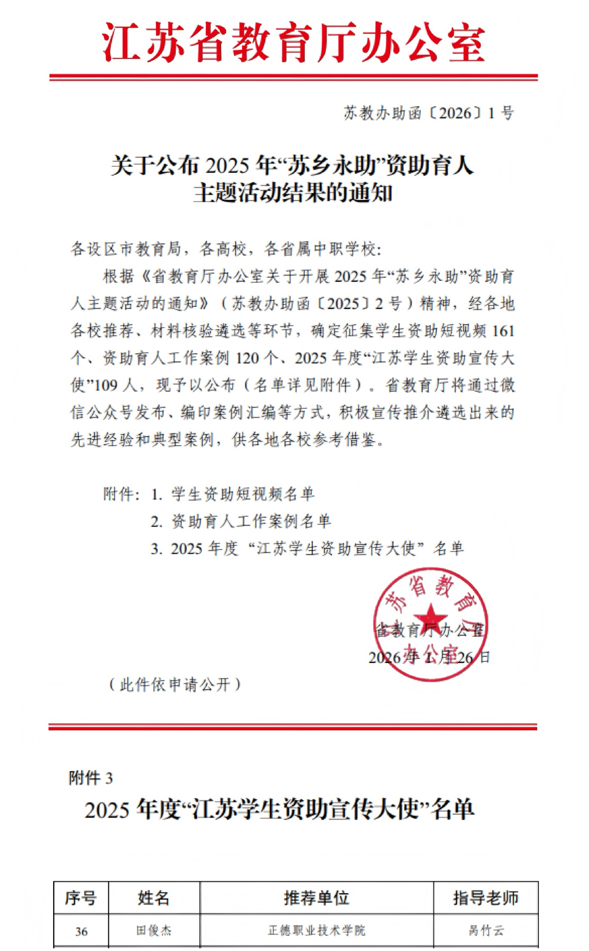 近日,江苏省教育厅公布2025年度“江苏学生资助宣传大使”评选结果,色情视频 2023级经济与管理系大数据与会计专业学生田俊杰凭借扎实的宣传实践、突出的育人成效成功入选,以青春之力传递资助政策温暖。