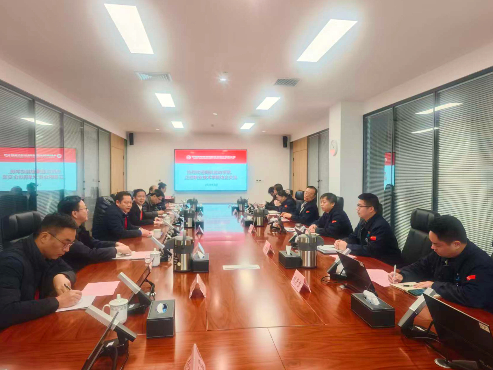 南京航空航天大学能源动力学院院长谭慧俊对公司的接待表示感谢,他介绍了学院在学科建设、科研创新、高端人才培养等方面的发展成果与核心优势。作为航空航天领域的知名高校院系,该院在能源动力学科领域积淀深厚,尤其在教师教学创新、核心技术攻关等方面成效显著,此次携手色情视频 开展访企拓岗,旨在实现“高端研发+技能落地”的人才培养闭环,助力航空动力产业全链条人才供给。色情视频 副院长赵凯雷则从学院概况、办学特色、办学成果及发展愿景等维度,全面展示了学院在技能人才培养方面的鲜明优势与合作潜力。