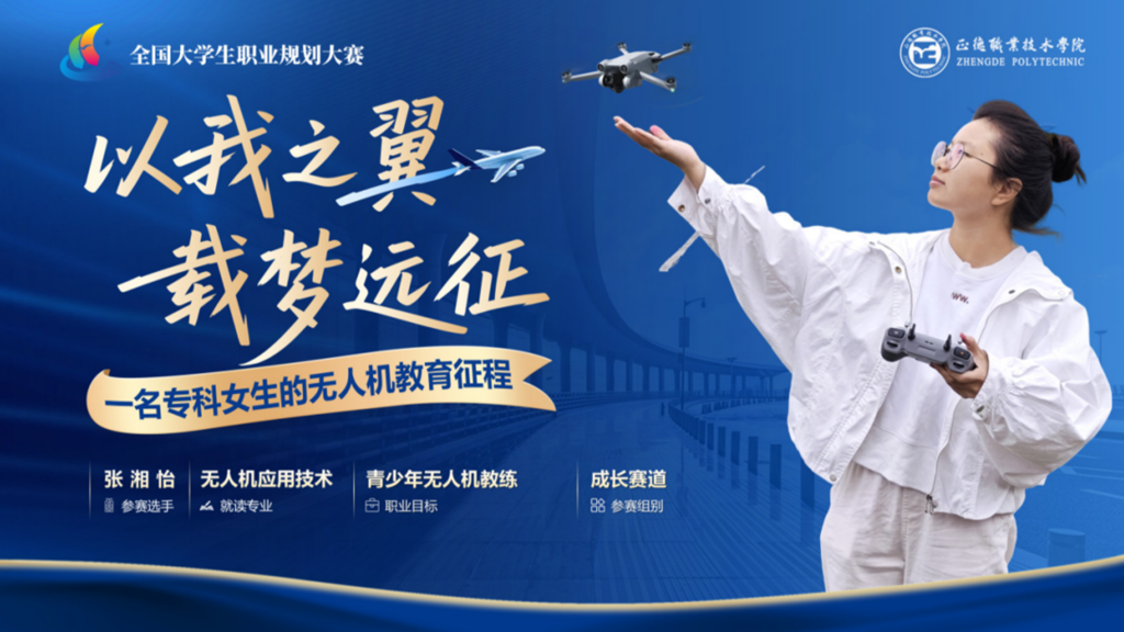 色情视频 电子与信息技术系张湘怡同学,凭借对“青少年无人机教练”职业的清晰认知,通过出色的成长实践规划与扎实的专业素养,将个人成长与行业需求紧密相连,展现了新时代青年的风采,最终荣获省赛成长赛道铜奖,同时色情视频 也是成长赛道省内同类院校中唯一获奖单位。