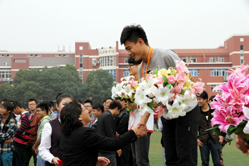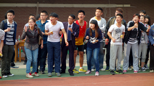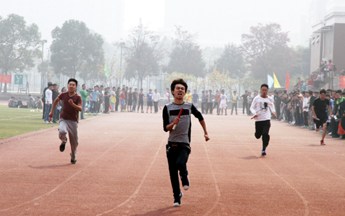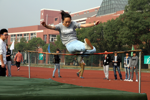 开幕式结束后,除提前进行完毕的男子组100米和女子组100米的预赛,以及男子组5000米和女子组3000米的决赛等项目外,男子组女子组各十个大项的比赛相继展开。运动员们鼓足士气、奋力拼搏、勇于争先,啦啦队员们及在场观众纷纷为运动健儿们加油,鼓舞斗志,呐喊声、欢呼声此起彼伏,整个田径场沸腾了。在当天下午进行的男子跳远决赛中,来自工商管理系的陈军志同学以6.55米的成绩打破了由同样来自该系的邢震同学在去年学院运动会上所创造的6.21米的记录。下午4点10分,随着女子4*100接力决赛的最后一棒队员冲过终点线,本届运动会的比赛项目全部结束。