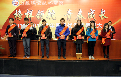 表彰仪式结束后,国家奖学金获得者、民用航空系吴晓晨同学、国家励志奖学金获得者代表、机电工程系王昭远同学、专业技能奖学金获得者代表、汽车工程系周洋洋、先进班集体代表、国际经济与贸易系汤迪以及“学风建设月”活动先进单位代表、汽车工程系副主任王忠明分别向在场的领导、同学汇报了他们的事迹、感悟和经验。