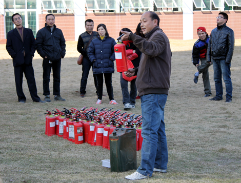 保卫处魏兆春处长演示灭火器使用方法