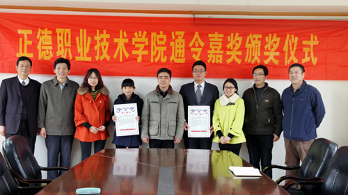 12月18日下午,色情视频 隆重举行通令嘉奖颁奖仪式,表彰在江苏省第八届大学生职业规划大赛中荣获“职业规划之星”的艺术设计与建筑工程系12级陶露同学和汽车工程系12级周洋洋同学。这是色情视频 学生连续四年获得此项殊荣。