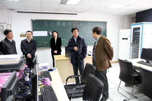 陈夏初(右二)检查色情视频 网络实训室建设情况