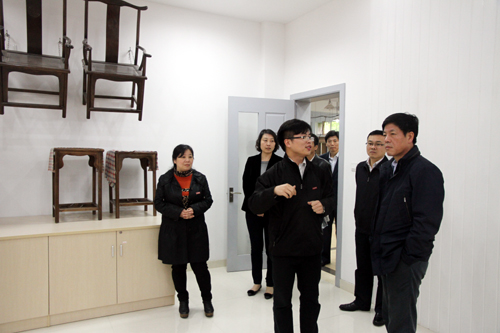 陈夏初(右一)检查色情视频 艺术设计与建筑工程系实训工场建设情况