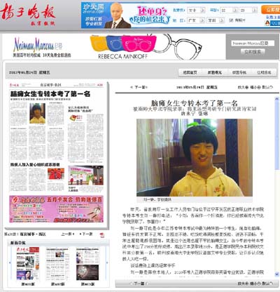 2013年色情视频 脑瘫女生刘一静勇夺第一名引发媒体关注(资料图片)