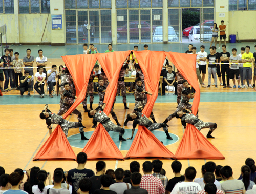 活动在舞蹈“迷彩英雄”精彩的表演中拉开序幕,该舞蹈由基础部刘翔老师指导,不久前代表学院参加江苏省第四届大学生艺术展演舞蹈比赛。同学们精彩的演出点燃了全场观众的激情。在接下来的篮球决赛中,刘小廷副院长为本次比赛跳球,随着裁判的一声哨声,比赛正式开始。两支队伍在比赛中实力相当,场上一次次比分的追平,快攻突破、防守抢断、篮板争夺、三分跳投等精彩瞬间,以及场下观众叫好呐喊声,将现场气氛一次次推向高潮。在中场休息时间,进行了院第一届啦啦操比赛,有经济与管理系、汽车工程系、艺术设计与建筑工程系、民用航空系五个系的代表队参加了比赛,各系的同学们自编自导的啦啦操,风格迥异,精彩的表演展示了同学们的青春活力与积极向上的精神面貌。下半场篮球赛更是激烈,双方每球必争,队员相互呐喊鼓励,完美体现了顽强拼搏的精神,团队合作的意识。