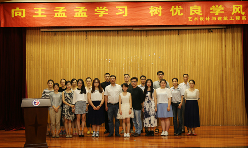 报告会后相关领导、辅导员和王孟孟同学合影