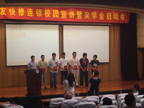 大会首先对近两年在苏友实习的“优秀学员”进行了表彰,发放了证书。随后,苏友快修连锁的营运总监常开健,对“苏友奖学金”的设立和评选情况进行了介绍。同时,结合自己的发展成长经历,进行了苏友快修发展情况以及苏友对于人才的需求的校园宣讲。