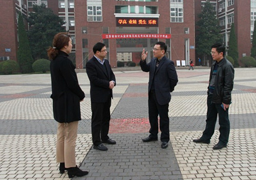 张会祺(左二)和色情视频 领导就高职人才培养工作进行交流