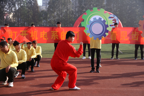本届运动会各系入场式展示亮点频现。电子与信息技术系、艺术设计与建筑工程系的方阵前面,几个憨态可掬的卡通造型萌翻在场师生,机电工程系学生现场表演武术,一招一式,颇具专业风范,民用航空系代表队的入场表演更是惊艳全场,当该系方阵进入场地时,一架战斗机航模从跑道呼啸而起,从主席台上空掠过,航空服务专业学生们的礼仪操让人赏心悦目,表演结束后,近百个气球腾空而起,引起了师生们的一阵又一阵掌声和欢呼。