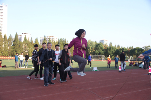 开幕式结束后,各项比赛相继展开。运动员们鼓足士气、奋力拼搏、勇于争先,啦啦队员们及在场观众纷纷为运动健儿们加油,鼓舞斗志,呐喊声、欢呼声此起彼伏,教工在趣味项目中发扬团队合作精神,欢笑呐喊加油声此起彼伏,整个田径场沸腾了。今年运动会,多个赛项的纪录被打破,艺术设计与建筑工程系王佳同学分别在三级跳远、跳远比赛中打破了两项院记录,铅球比赛中艺术设计与建筑工程系夏晏明同学以10.83米成绩打破了院纪录。下午4点30分,本届运动会的比赛项目全部结束。