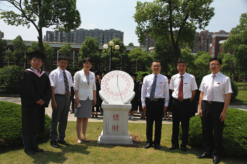 毕业典礼上,2017届全体毕业生准备了一个名为“日晷”的特殊礼物,敬赠给母校。 “日晷”是人类古代沿用数千年的计时器。它的正面雕刻着“惜时”两个字,反面雕刻着明日歌。毕业生们以此提醒学弟学妹们珍惜青春、珍惜岁月,抓住机遇,奋力拼搏。