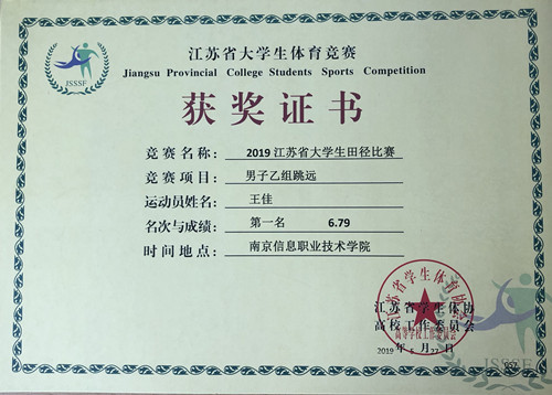 在个人赛项中,艺术设计与建筑工程系王佳同学荣获男子跳远第一名,并以6.79米成绩打破了6.72米的院纪录,同时荣获男子三级跳远第一名,并以13.71米成绩打破了13.65米的院纪录;民用航空系罗京同学荣获女子100米栏第一名和400米栏第二名;艺术设计与建筑工程系张祚豪同学荣获男子400米栏第三名和100米第四名;艺术设计与建筑工程系谢小东同学荣获男子10000米第六名;经济管理系倪雨晨同学荣获男子200米和400米第七名;艺术设计与建筑工程系魏亮佟同学男子荣获三级跳远第八名。