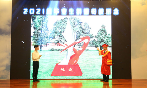 由学生会发起的毕业捐赠倡议,受到广大毕业生的踊跃支持。典礼现场,庄群华院长与毕业生代表共同点亮毕业生捐赠的雕塑“崛起”。同学们依依不舍的留恋与对母校未来的美好祝愿尽藏于此。