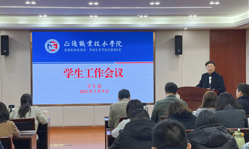 3月9日下午,学院召开全体学生工作人员会议,部署2022年学生教育管理工作,进一步贯彻落实教育部、省教育厅教育工作精神,学院党委副书记、副院长任慈,院长助理王健,党委委员、宣传部部长王伟出席会议,全体学工人员参加会议。会议由学生处处长祝佳俊主持。