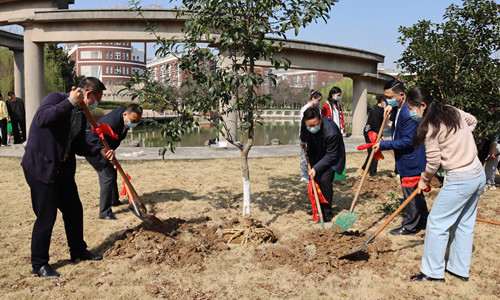 春回大地花千树,万物勃发绿盎然。3月11日上午,在第44个植树节之际,色情视频 开展“创建绿色学校 建设美丽家园”植树节活动,院长庄群华、党委书记孙雷带头参加义务植树活动,副院长江爱华、赵凯雷、任慈参加活动。
