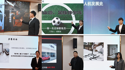 总决赛包含职业规划陈述、职业感悟陈述以及评委提问答辩三个环节。职业规划陈述和职业感悟陈述环节中,参赛选手通过演讲、体验展示等形式,突出选手本人规划作品中的目标职业角色特点,展现选手职场新人的职业形象。提问答辩环节,评委们则根据选手职业定位进行发问,选手们的精彩表现获得了评委们的频频点头。比赛中,来自汽车与机电工程系的徐嘉乐同学从所学专业出发,秉着对汽车改装技术的热情,立志要做一名高档汽车美容改装师;民用航空系的殷淑琦从小在爷爷的耳濡目染下渐渐爱上了书法,立志要成为一名习字传承者——书法老师;基础教育系的高新茹同学以想要推动中国青少年足球发展为初心,从儿时自己参赛的经历、寒暑期兼职足球教练出发,期望发挥自己的专业特长,成为一名中国足球发展的推动者。此外,选手们还呈现了无人机行业硬件工程师、财务总监、飞机机械维修师等职业目标规划方案,切实合理地规划了自己的学习与生活,实现个人的可持续发展。