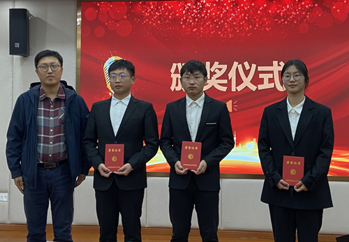 祝佳俊老师为三等奖获得者董雨康、王骁、李鹏飞颁奖