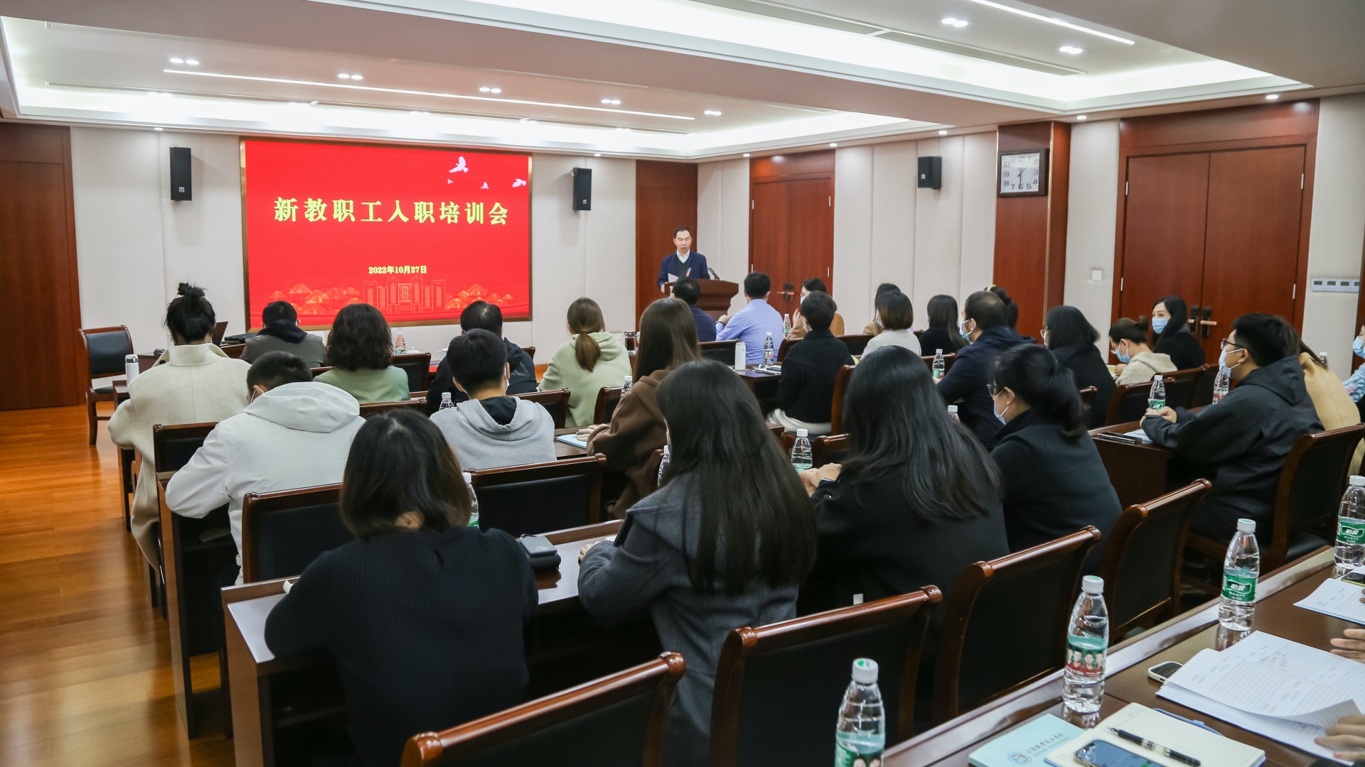 10月27日,学院组织召开新教工入职培训会,院长庄群华,人事处、教务处、学生处主要负责人、教师代表,以及全体新进教职工参加会议。会议由人事处处长刘玉宝主持。