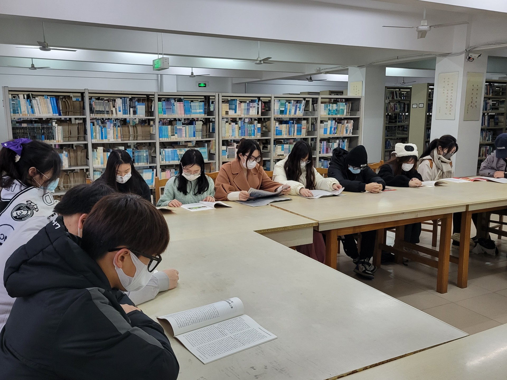 同学们认真阅读近期图书馆馆藏的《人民日报》和《求是》周刊,并交流发言,谈了各自的学习心得体会。