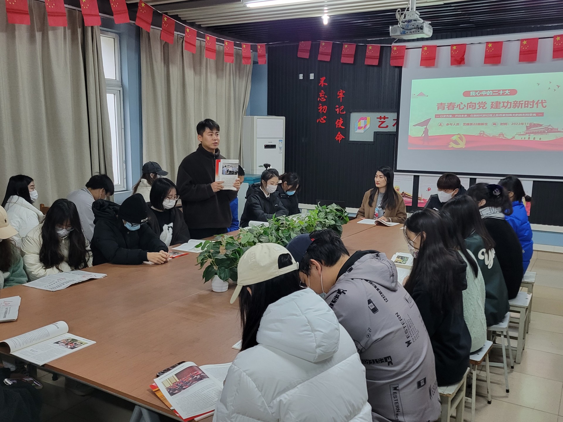 为扎实推进习近平新时代中国特色社会主义思想进学校、进课堂、进头脑,推进“大思政课”建设,丰富教育内容,创新方式载体,引导学生热爱阅读、坚定信念、德技并修,树立正确价值观,11月28日,由艺术设计与建筑工程系辅导员廖晶晶组织,大一新生团员代表和入党积极分子们在5209图书馆积极开展了“二十大在我心中,悦读伴我成长”为主题的师生共读党报活动。