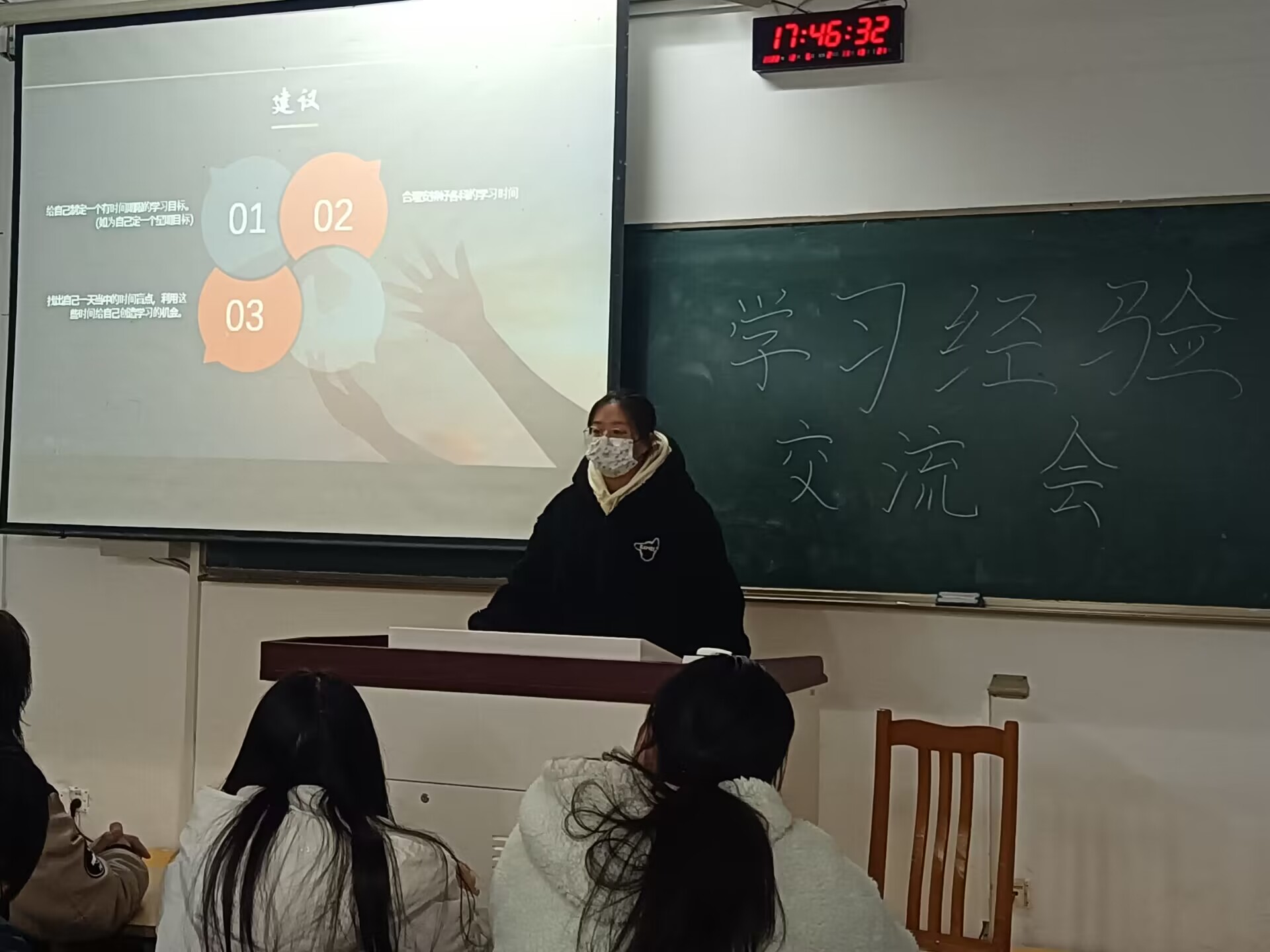 交流会正式开始,新闻班王丹妮同学首先发言,王丹妮同学就英语学习误区和学习方法之间的关系发表了演讲,用“勤奋”“计划”“心态”三个关键词总结着自己的成功,并将自己背单词、写作的小技巧和一直在用的软件分享给大家,沈琦同学向大家介绍了自己的问题学习法和番茄学习法,做到心与心的沟通,呼吁大家在学习时注重劳逸结合,正确处理压力。
