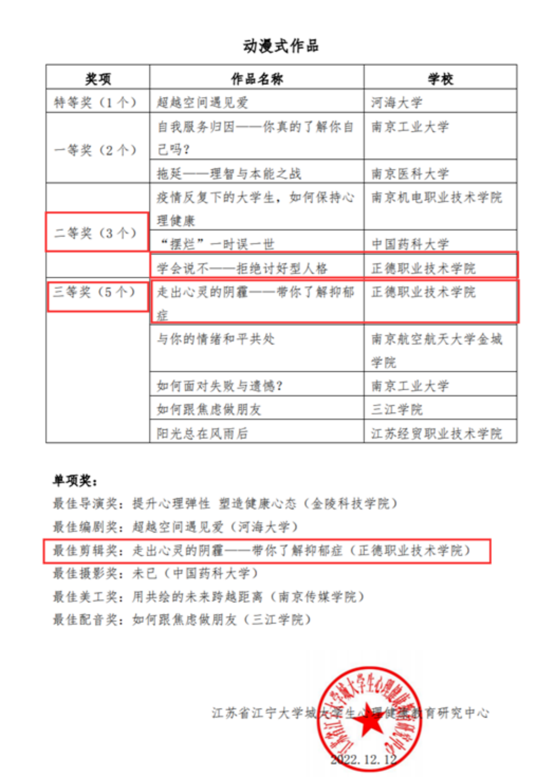 江宁大学城心理健康移动微课程比赛已连续开展六年,吸引了广大师生积极参加,在各高校友好交流的同时,创作产生了一系列生动趣致、寓教于乐、富有时代和青春气息的心理健康科普类短视频作品,应用于学校的心理健康宣传教育,促进了同学们对心理健康的关注和思考。色情视频 自江宁大学城举办微课大赛以来,共获一等奖2项、二等奖1项、三等奖1项。今后,色情视频 也将一如既往加强大学生心理健康教育建设,坚持“育人” “育心”相统一,激励同学们不断向阳携行,共创未来。