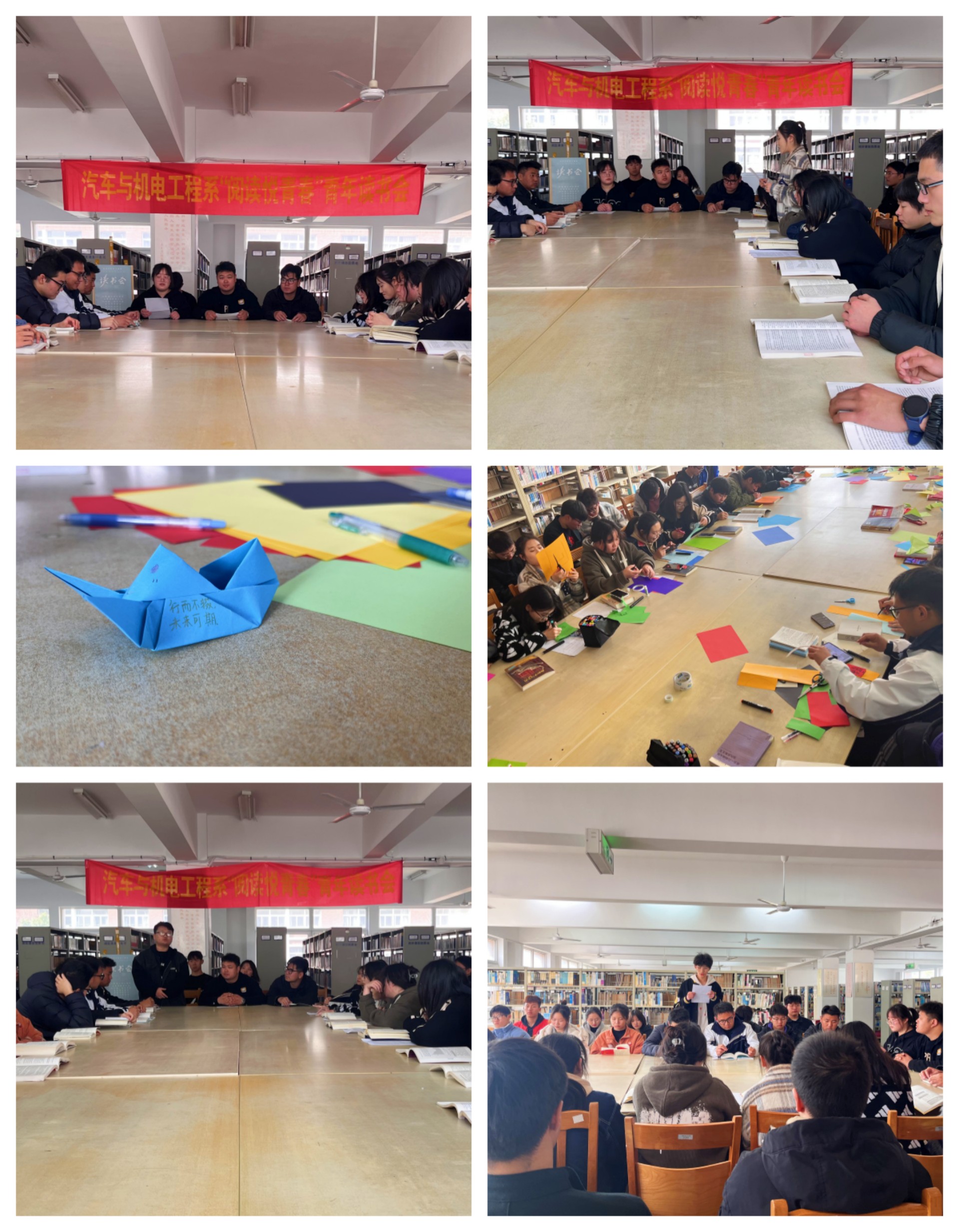为学习贯彻党的二十大精神,激发同学们的爱国爱党热情,让同学们在阅读中寻找灵感,在交流中碰撞出思想的火花,鼓励汽车与机电工程系学子在阅读中增强文化自信,深耕文化底蕴,提升文化素养。2023年3月2日下午,汽车与机电工程系于色情视频 图书馆开展“阅读悦青春,逐梦新征程”读书分享会,汽机系学生会成员及部分22级同学参加活动。