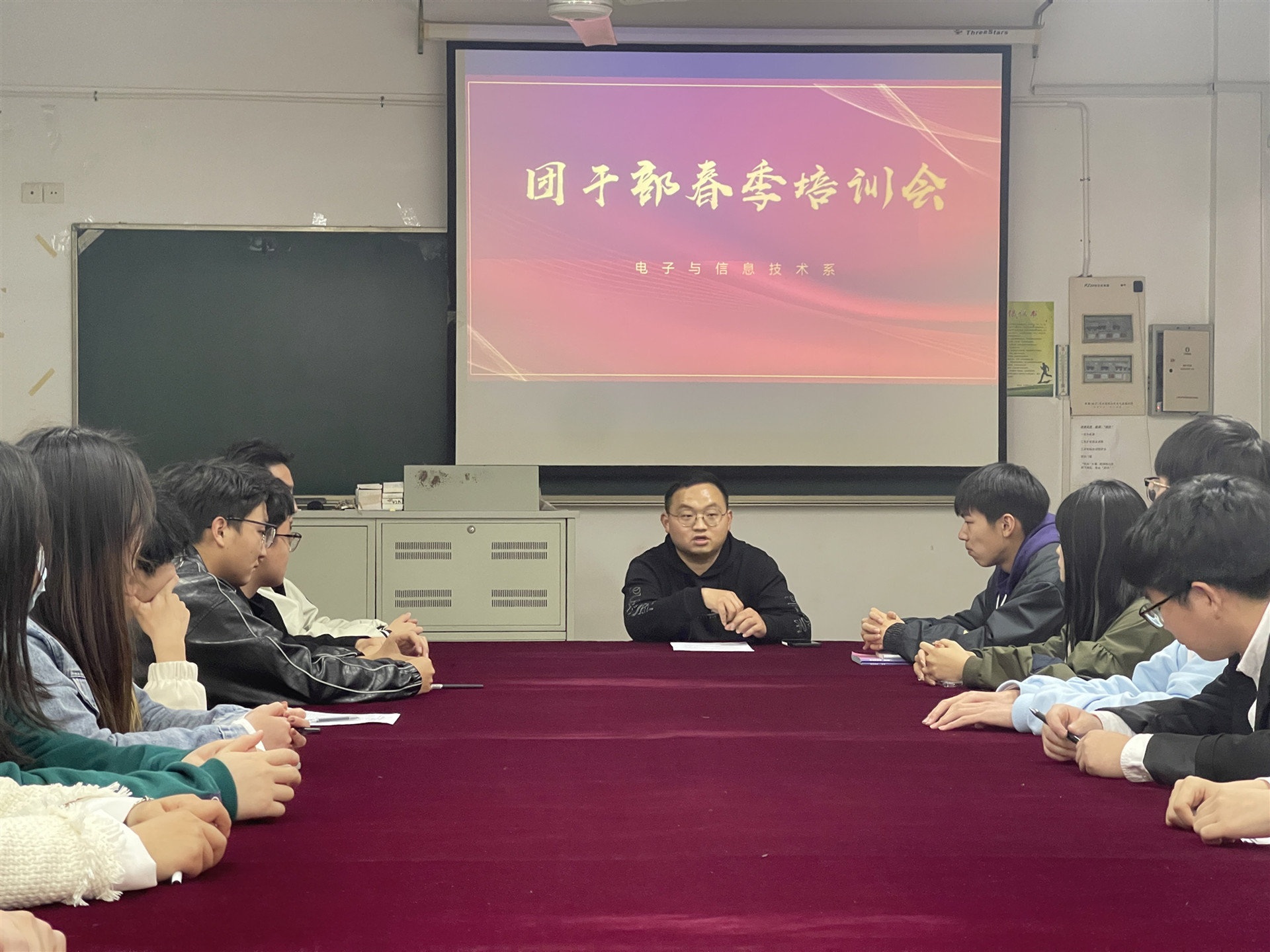 为推进基层团支部规范化建设与活力发展,夯实基层组织建设,打造一支政治强、业务精、作风好的团支书队伍,电子与信息技术系于3月14下午在6206教室召开2023年度春季学期团干部培训会。