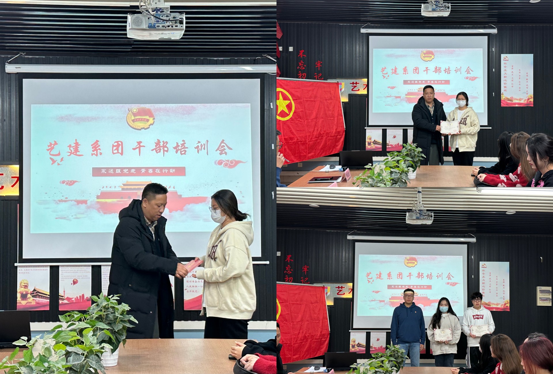 培训会第三议程,陈宏波为团总支的组织部、摄影部、新闻部进行表彰,表示对他们工作的肯定和鼓励。