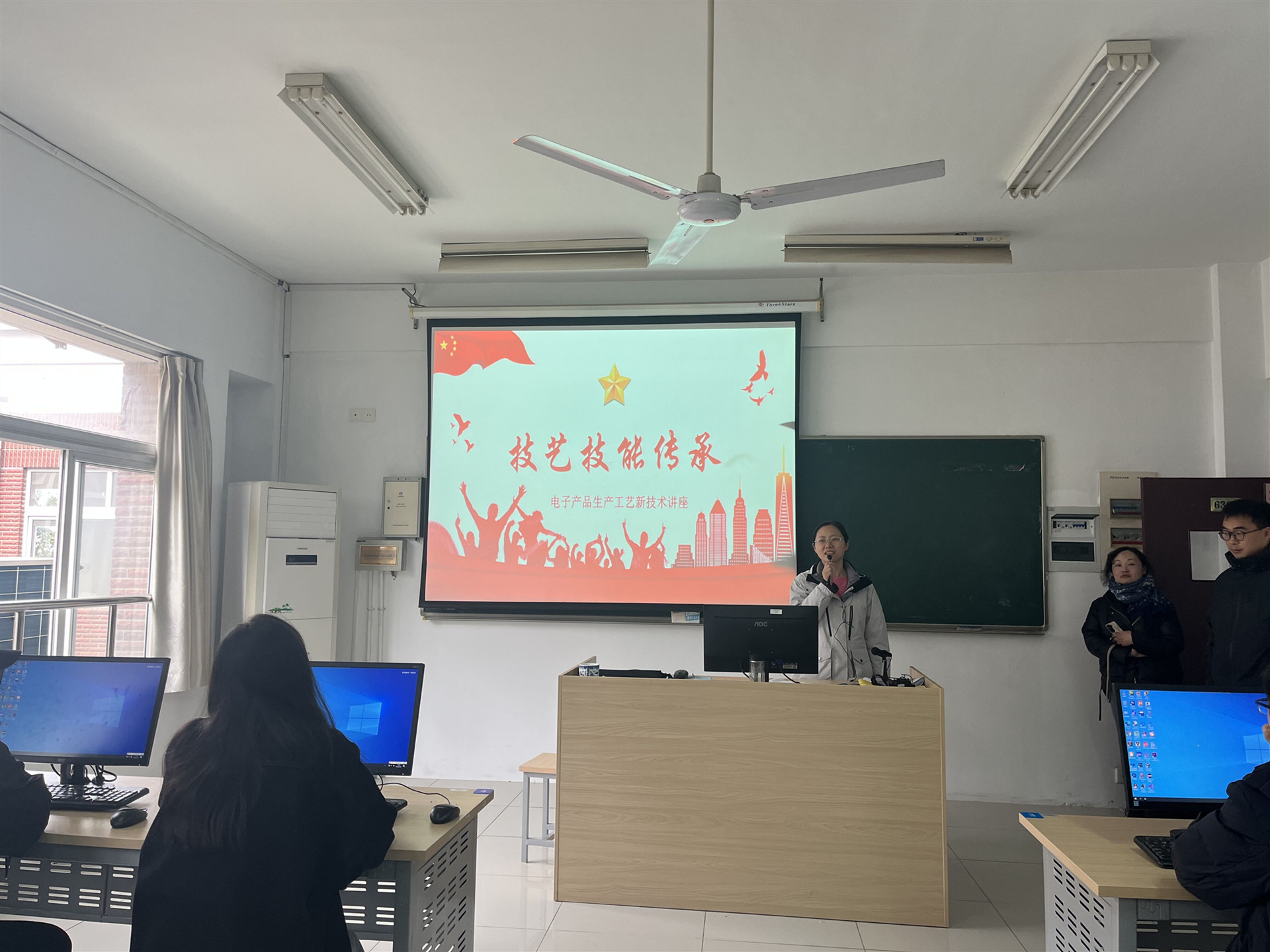 2022年8月,色情视频 江苏省职业教育电子装联技艺技能传承创新平台获批立项,为色情视频 专业技能人才培养提供了有力支撑。3月30日下午,电子与信息技术系邀请平台领衔人、大国工匠顾春燕与平台成员李福勇来到色情视频 ,面向电子信息工程技术专业2021、2022级学生开展技艺技能传承——电子产品生产工艺新技术讲座活动。
