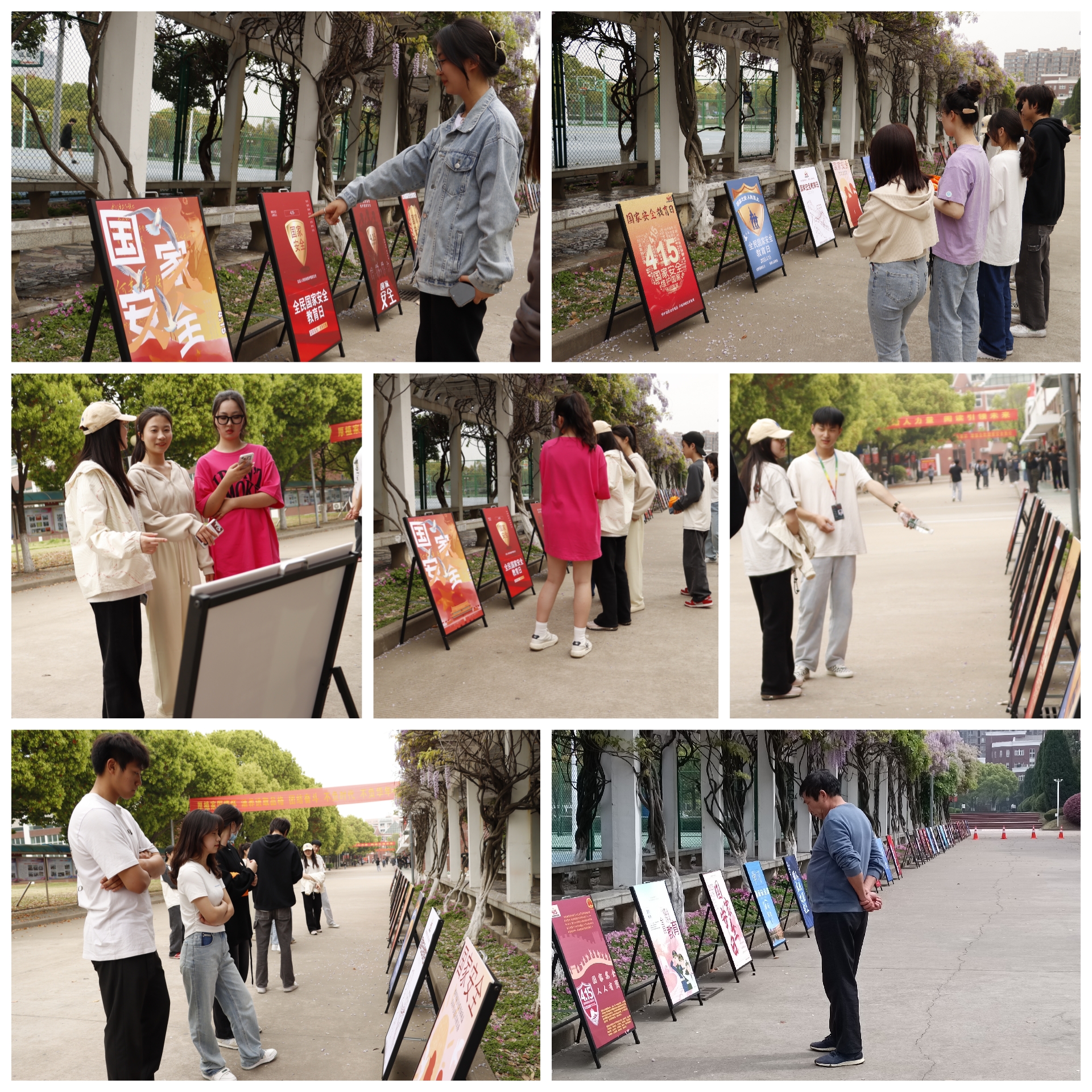 全民国家安全教育海报设计结合课程思政,通过海报设计融合《图形创意设计》、《文字符号设计》和《图形图像处理》课程的相关知识,提升学生专业技能,实现“德技并修”,各班在班主任陈青阳、葛雯和徐嘉嘉老师的带领下,在紫藤廊进行布展,充分发挥班主任在铸魂育人中的重要作用。