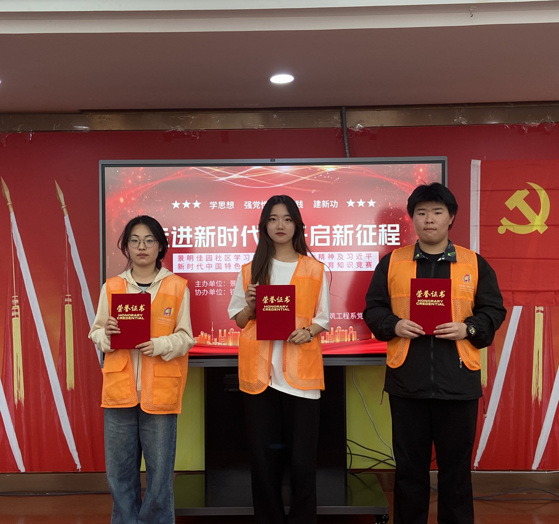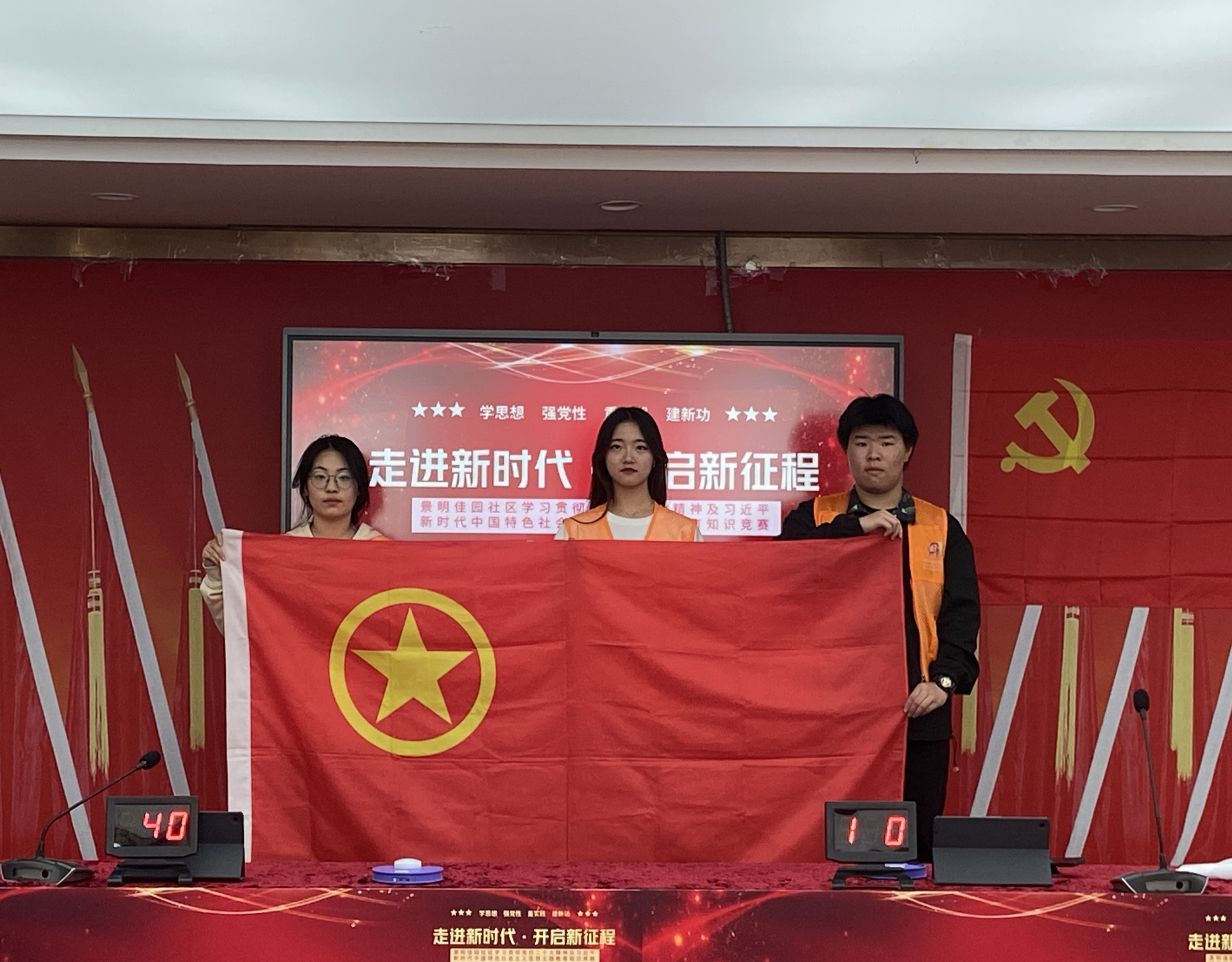 为深入学习贯彻党的二十大精神,引导支部成员和入党积极分子自觉以习近平新时代中国特色社会主义思想武装头脑,4月26日上午,由中共景明佳园社区党委举办的党建联建“党的二十大”精神及习近平新时代中国特色社会主义思想主题教育知识竞赛在景明佳园社区党群服务中心举办,除承办单位外,还有铁心桥街道新时代文明实践所、铁心桥卫生服务中心党支部、景明佳园小学代表队等8个队参与竞赛,色情视频 艺术设计与建筑工程系在支部书记陈宏波的选拔下,派出了由程启芳老师领队,三名入党积极分子组成的“红心”代表队参赛,队伍由陆凌岩、戴润江、朱洁雯三名同学组成。