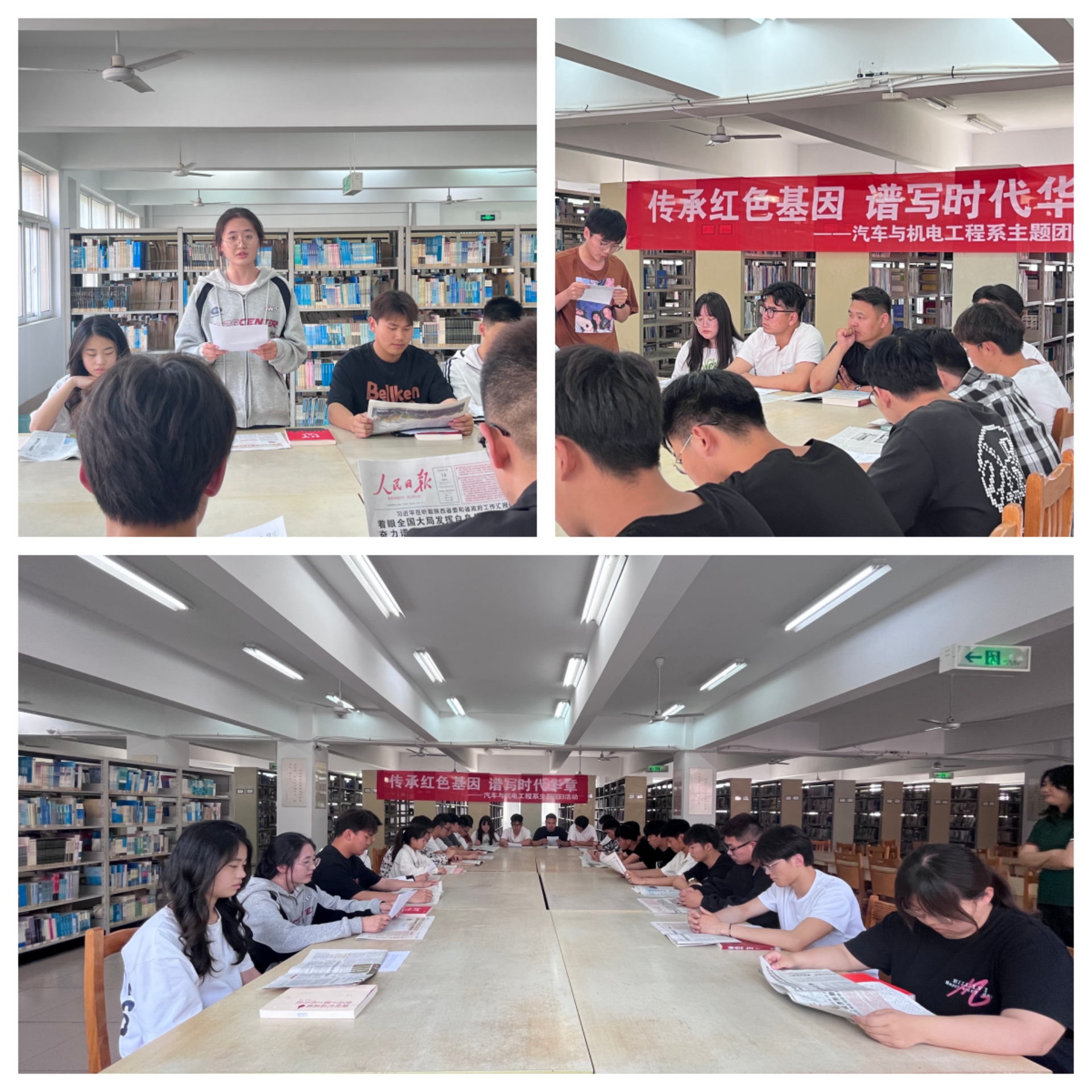为丰富学生文化生活,营造“爱读书、读好书、善读书”的浓厚氛围,进一步激发同学们的阅读兴趣,2023年5月25日,下午16时,汽车与机电工程系开展“学思想、跟党走、建新功”主题团日活动。
