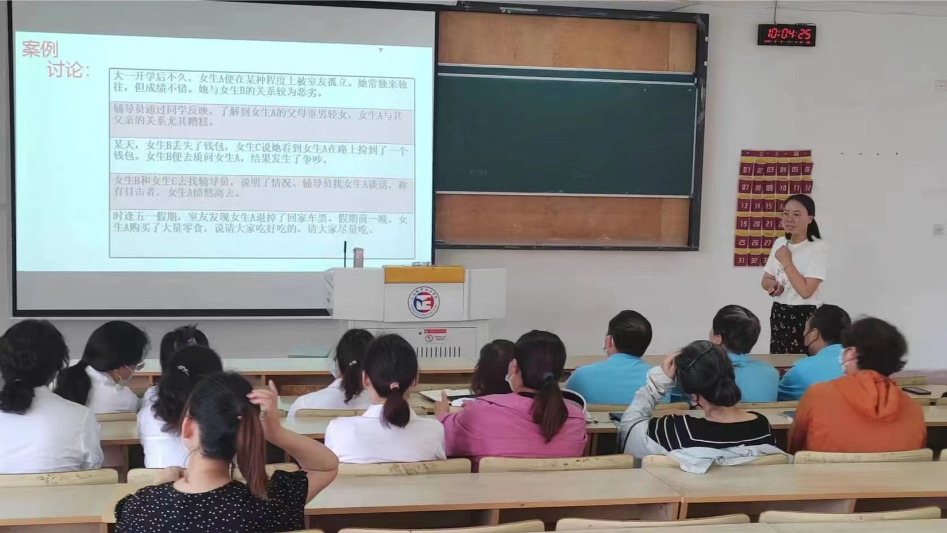 培训伊始,樊老师针对大家最关心的话题“校园心理危机的预防与干预”分层次地做了重点讲解,分别从“什么心理危机”、“心理危机的识别”、“心理危机的干预”三个方面带领大家做了学习。随后,在“案例实操演练”环节,樊老师带着大家进行现场模拟、操作,大大提升了老师们对危机干预技能的理解和运用。培训中樊老师结合自身的专业知识和经验,帮助班主任和宿管人员了解大学生的心理状态,鼓励大家关注学生心理健康,及时发现和处理学生心理危机事件,为学生的成长保驾护航。