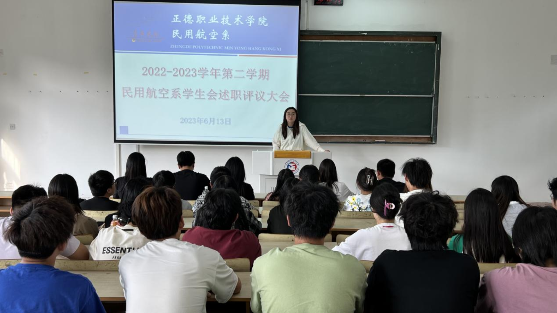 2023年6月13日,民用航空系学生会在1302教室召开学生会述职报告大会,会议目的在于总结学年的工作和未来规划目标,增强学生组织内部凝聚力。民用航空系团总支书记陈瑶老师及学生会全体成员参加会议。