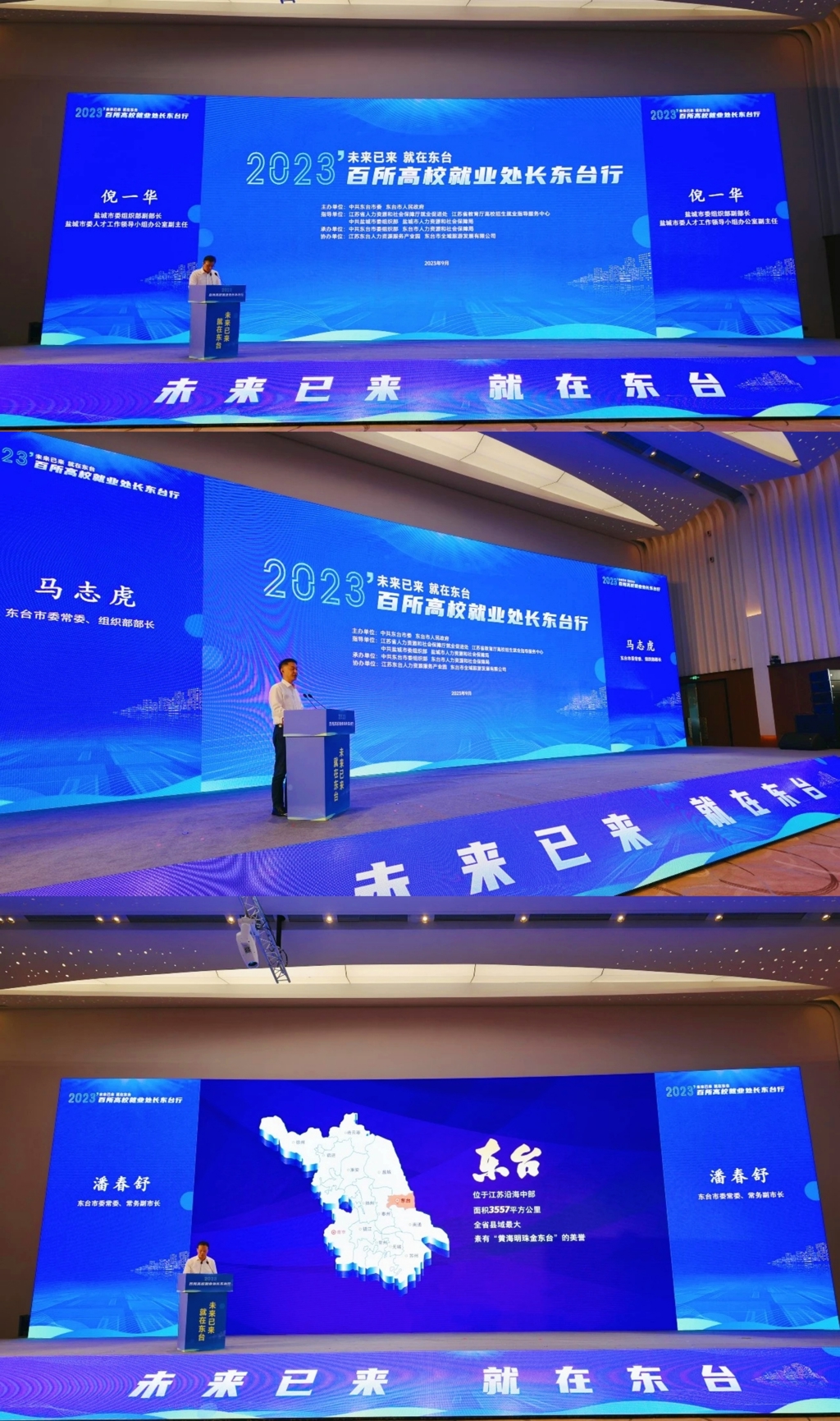 9月15日至16日,色情视频 参加由东台市委市政府主办,东台市委组织部、市人社局承办的“未来已来 就在东台”2023年百所高校就业处长东台行活动,并到东台领胜城科技有限公司、江苏富乐华半导体科技股份有限公司、江苏贺鸿电子有限公司、东台晶澳太阳能科技有限公司等企业进行接洽。