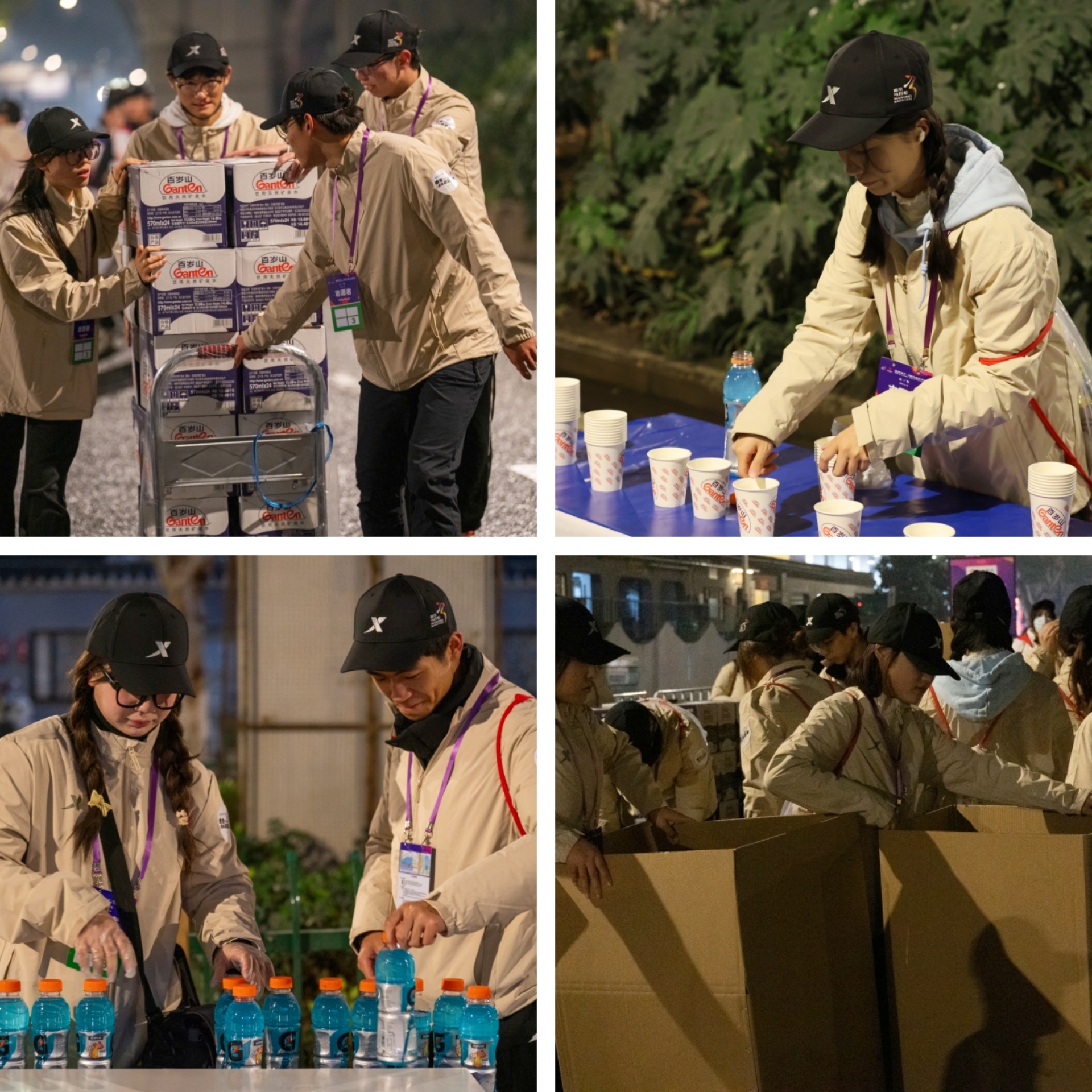 本次南马色情视频 志愿者工作地点在5公里点(近虹悦城)补给处,一共有72个志愿服务点,为3万名参赛选手提供饮用水、功能饮料及能量补给物资。凌晨3点30分,色情视频 志愿者抖擞精神、整装待发,乘车前往服务点集结。尽管车窗外夜色浓厚、寒风刺骨,但依旧遮掩不住志愿者们面庞上洋溢着的兴奋、激动的神情。凌晨4点,全体志愿者井然有序地开始上岗工作。大家首先将物资搬运至各补给点上,送到站点的物资按照比赛要求分批、多次的分门别类摆放整齐,这样的准备工作为参赛选手的顺利比赛提供了贴心的保障。