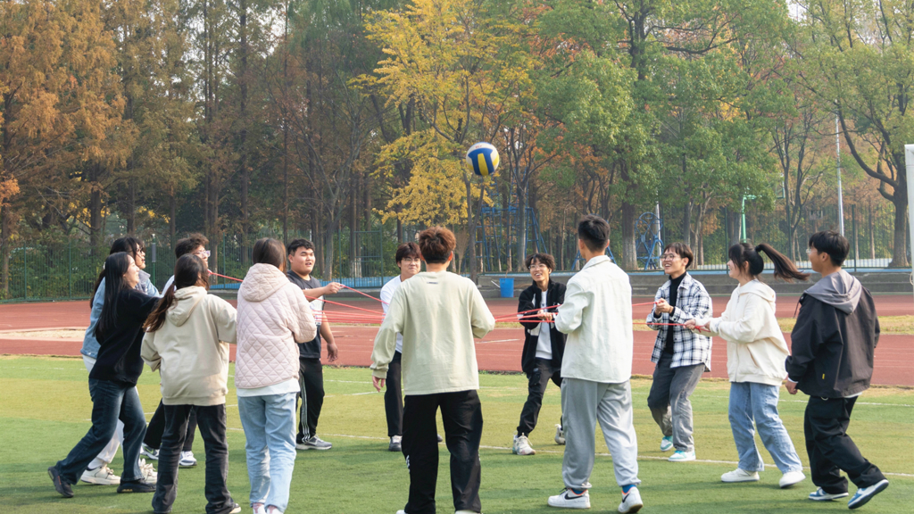 活动设有管道传球、同心鼓、合力筑塔、无敌风火轮、不倒森林五个赛项。比赛中,同学们精神饱满、奋力争先,配合默契,始终秉承“友谊第一,比赛第二”的精神,整个比赛的氛围愉快而又紧张。队员们奋力拼搏的精神带动了全场气氛,周围的观众呐喊声不断,田径场上充满了欢声笑语,洋溢着新时代大学生的蓬勃朝气。