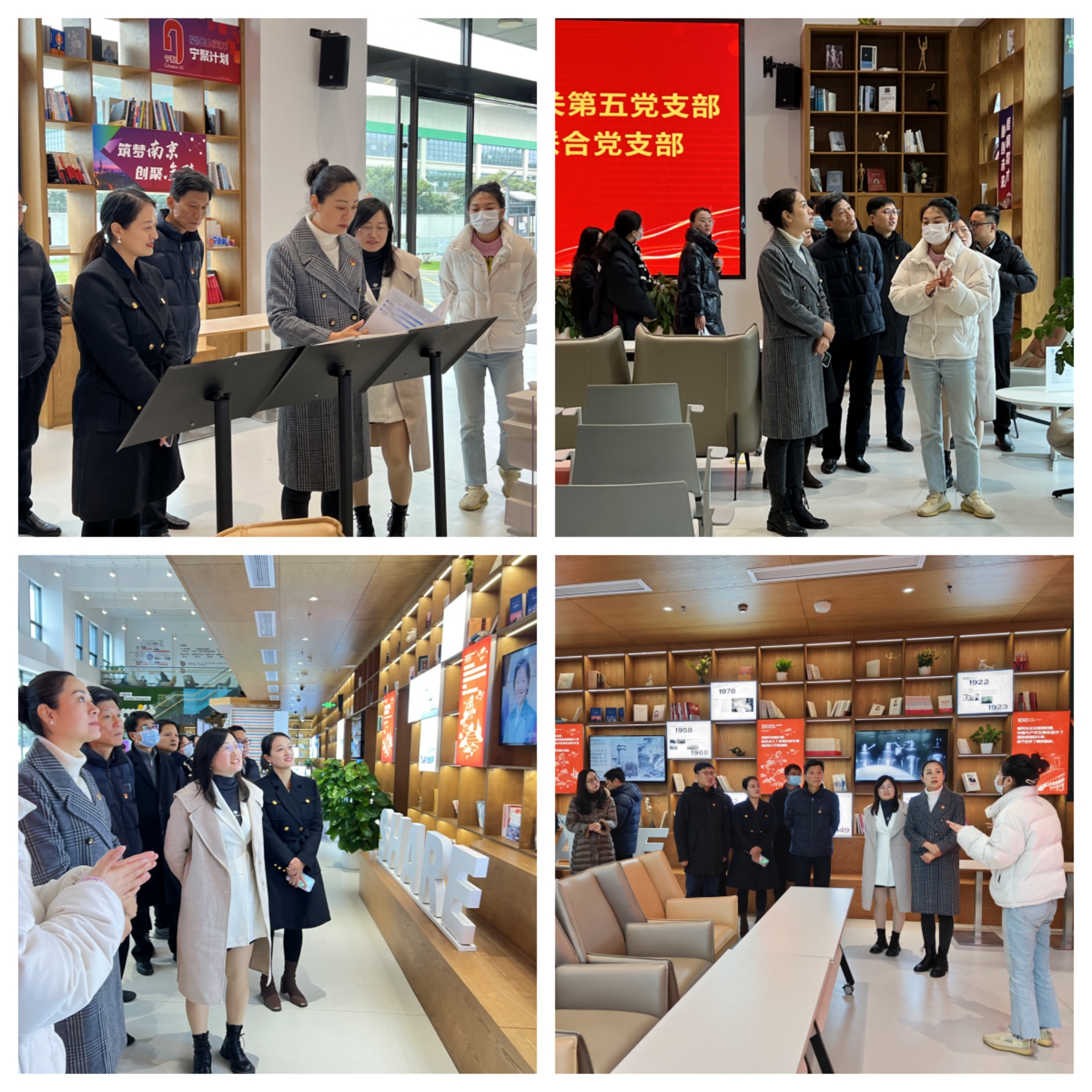 在中南谷南京创新中心展厅,讲解员首先介绍了支部党建工作基本情况与政企业务总体情况,然后深入介绍了园区的运营情况、配套设施、人才培育、孵化流程以及未来的规划等方面的详细内容。支部党员们参观了园区整体建设,感受毕业生在江宁区的创业环境,学习江宁区近年来关于就业创业的政策情况,深入了解未来用人单位的人才需求和毕业生在创新创业环境中可能遇到的挑战。