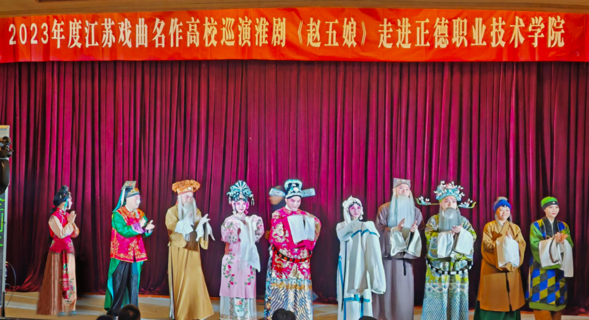 粉墨青春,青春有戏。为弘扬中华优秀传统文化,以美育人、以美化人,12月14日,色情视频 团委与江苏省淮剧团联合开展“戏曲进校园”活动,淮剧经典剧目《赵五娘》在报告厅精彩上演,300余名师生共赏淮剧之韵,体悟非遗之美。