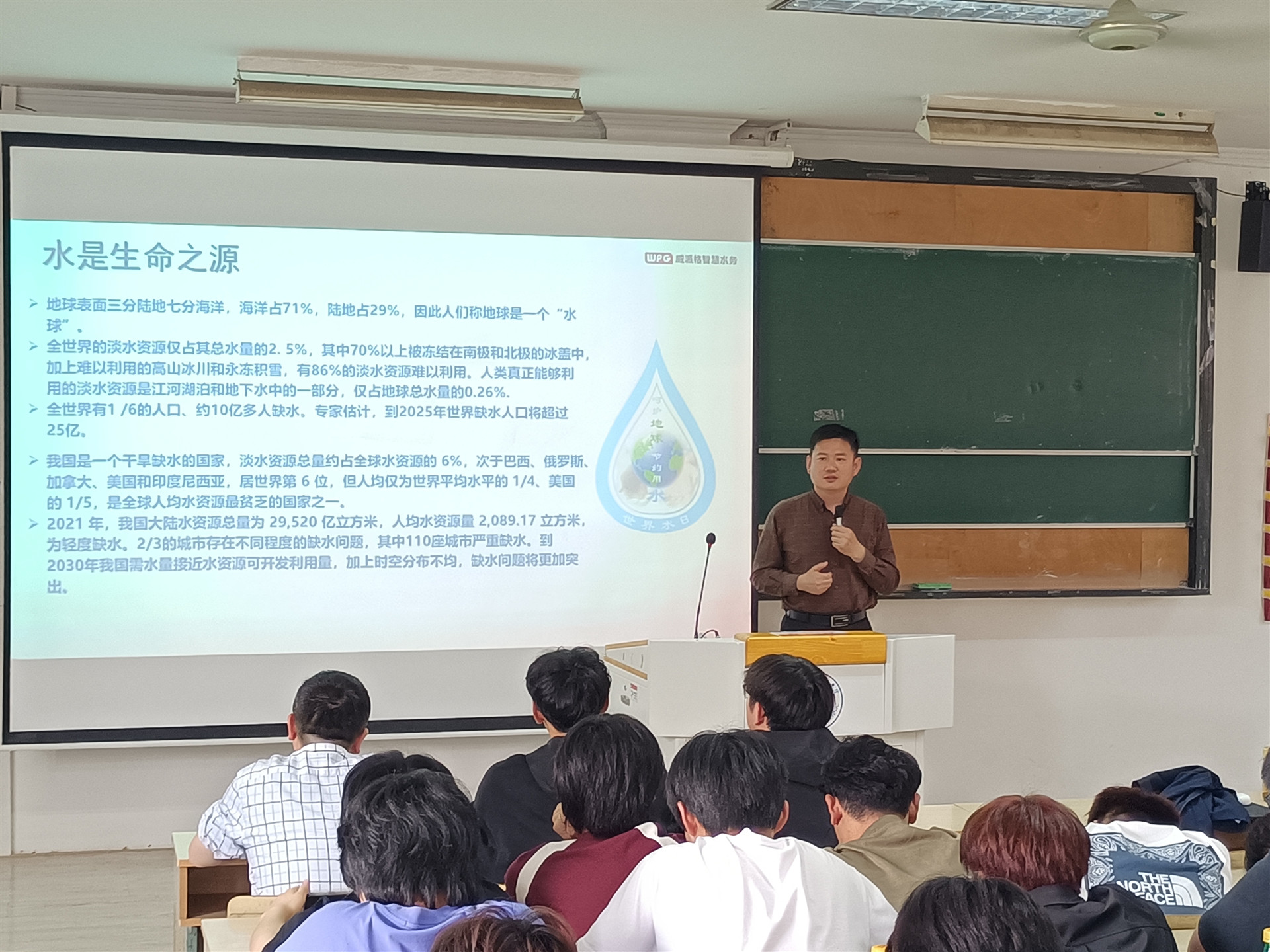 随后,威派格研究院软件产品部总监任克亮结合水务行业的现状与趋势,详细介绍了公司的主要业务和发展前景。他鼓励同学们保持积极的心态,勇敢追逐梦想,并根据自身情况选择合适的岗位。