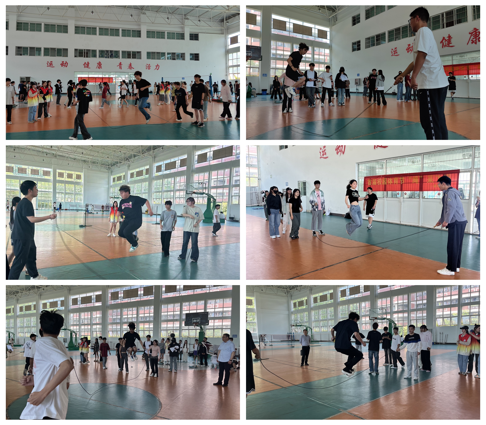 为进一步丰富学生校园生活,增强学生体质,培养学生积极向上的体育精神,2024年5月17日中午基础教育系在体育馆举办跳长绳比赛,公共教学部杨卫东主任、基础教育系党支部书记包毅及各系学生运动员参加本次活动。