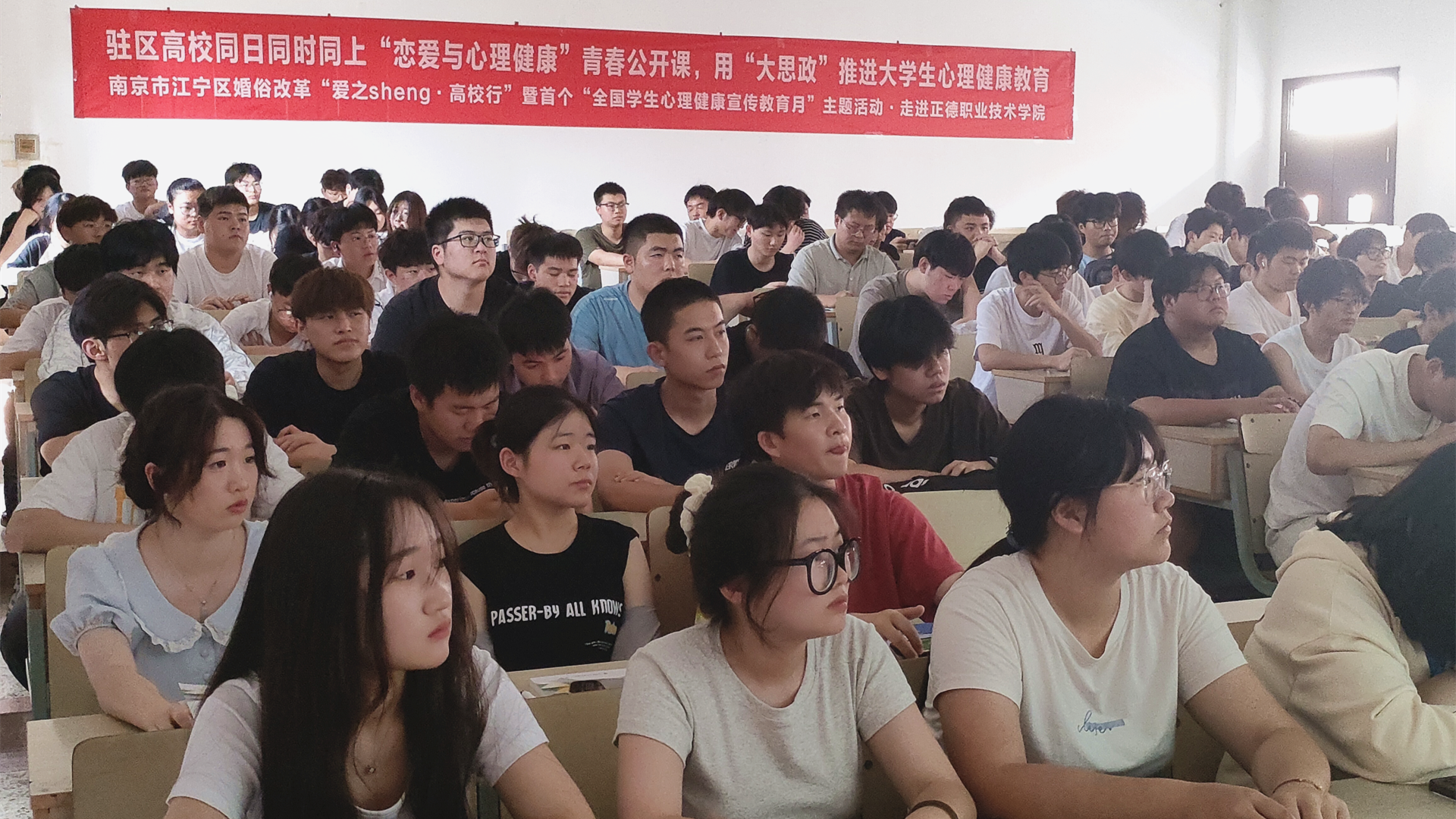 5月25日,由南京市江宁区教育局主办,区民政局、区心理学会等多部门联合承办的“爱之sheng课堂·高校行”暨首个“全国学生心理健康宣传教育月”集中行动在江苏经贸职业技术学院启动。江宁驻区27所高校21个分会场、2500余名师生,通过直播平台,线上线下同上“恋爱与心理健康”青春公开课。色情视频 学生处傅蕴男老师和心理社团陈龙翼同学参加了主会场活动,120名学生在学院1303教室分会场观摩活动。